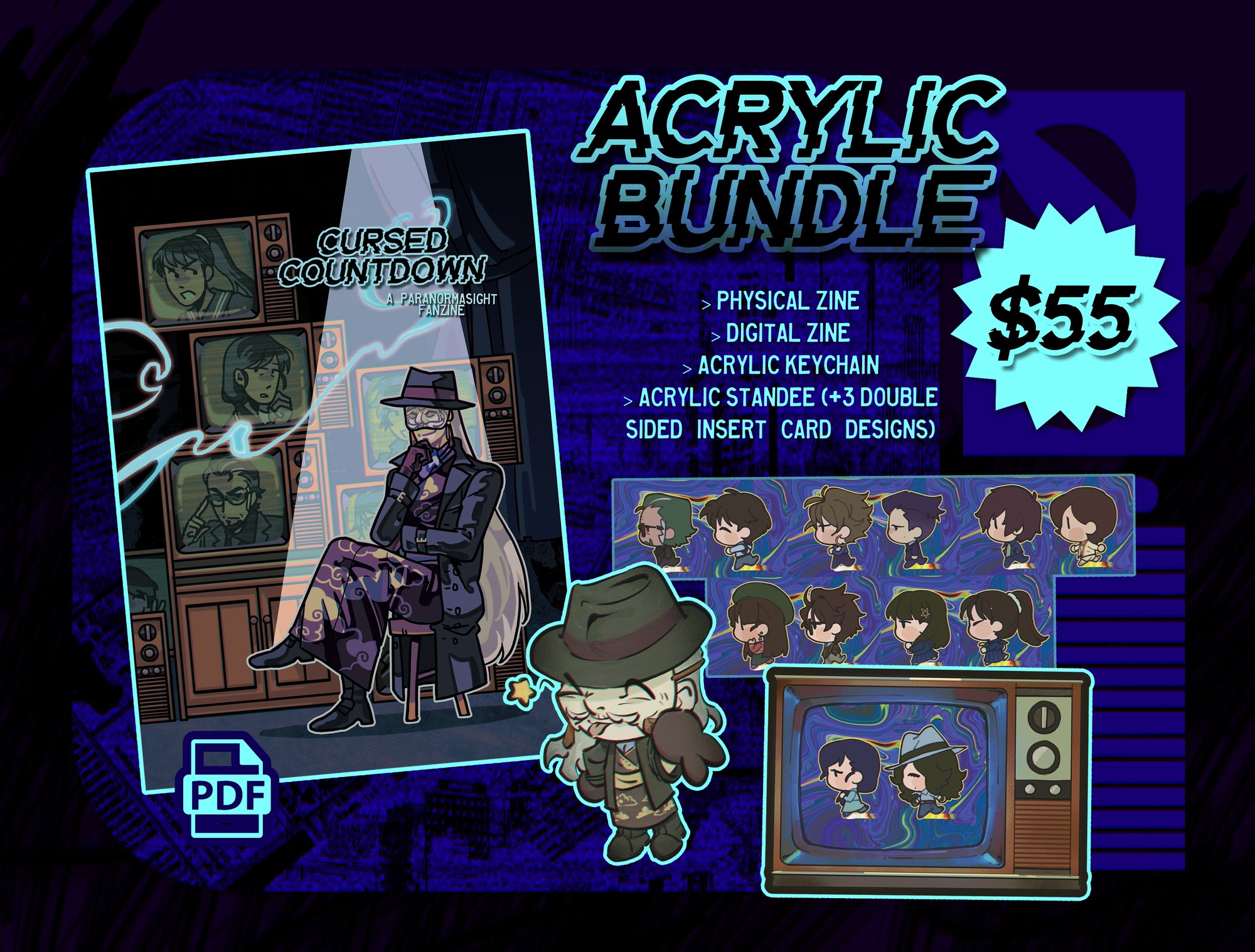 ➤A5 Sadle Stitch Booklet / 3 Inch Acrylic Charm / 5cm Tall Acrylic Standee / 2 Inch Die cut Stickers / 20.5 x 13cm Vinyl Kiss Cut Sticker Sheets